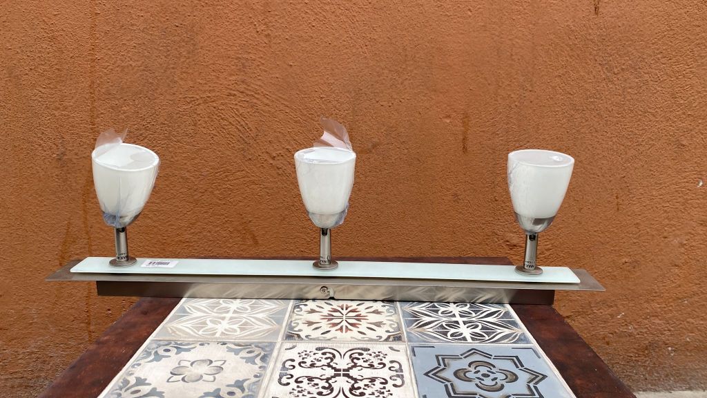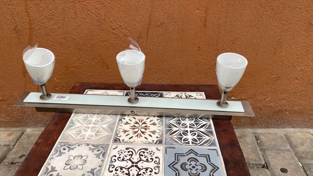 Conjunto de tres lámparas para colocar en el techo. En perfecto estado, no han sido utilizadas. A la venta el domingo 1 de septiembre en la próxima edición de Ganbarazelai. Precio: 15€.