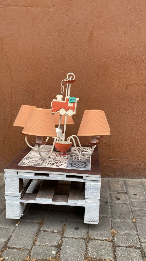 Dos lámparas de techo similares para dormitorios infantiles, una verde y la otra naranja. En perfecto estado y listas para colocar. A la venta el domingo 1 de septiembre en la próxima edición de Ganbarazelai. Precio: 50€ cada una.